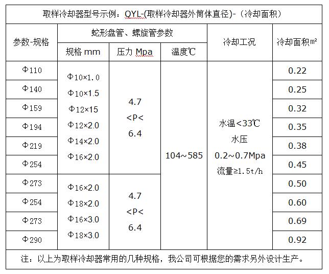 二、爐水取樣冷卻器設(shè)備型號與規(guī)格